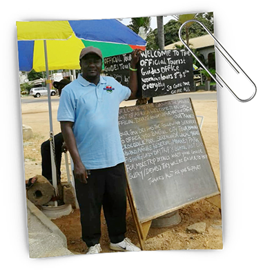 De standplaats van Dembo Trips is gelegen bij de ingang van hotel Holiday Beach Club,
